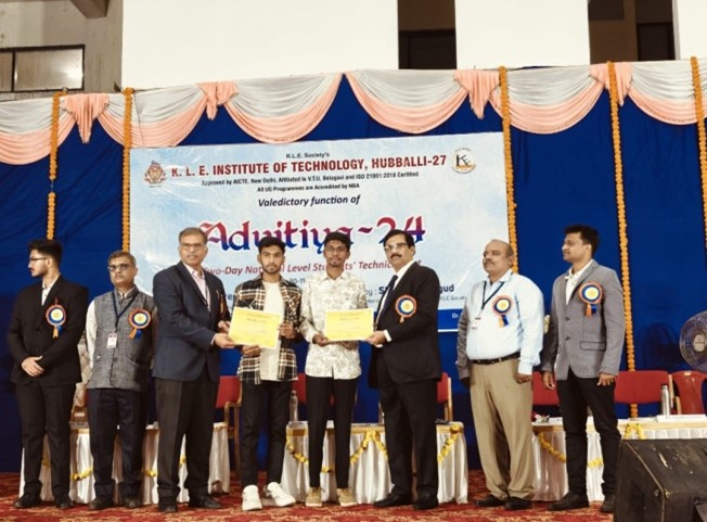 Navodaya Institute of Technology Raichur, Department of Electronics & Communication and Department of Electrical & Electronics Engineering students studying in 2 nd , 3 rd and final year participated in several events in the Technical Fest “Advitiya-24” organised by KLE Institute of Technology, Hubballi on 29 & 30 th of November 2024. The Final year Students Syed Miskin Quadri & Abdullah Bin Omer Amir secured first place in the Play Venture Event organised by Department of ECE & Third year Students Laxmi & Zeba Kausar secured third place in the Paperscape event organised by Department of EEE. Dr. Channaveeramma, Associate Professor in ECE Department accompanied all the students. Management, Director, Principal Dr. M. V. Mallikarjuna, ECE Head Dr. K. Venkatachalam, EEE Head Dr. K. Narasimhaiah Achari and faculties congratulated all the students for their participation & encouraged them to participate in several events of other colleges.