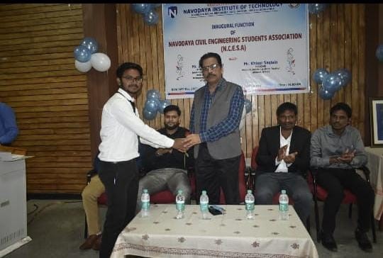 On 08.12.2022 in Navodaya Institute of Technolgy, Civil department was organized inaugural function of Navodaya Civil Engineering Students Association(NCESA).The principal Dr.M.V Mallikarjuna, HOD Dr.M.Satish Reddy and association coordinator prof. Mohammed Adil shared their views and main objectives of this association. Chief guest for this programme were Mohammed Zubair Ahmed (Junior Geotechnical Engineer Orbit Engineering Ltd Brampton,Ontario,CANADA) and Khizer saqlain (Vision Tutorials Institute, Raichur) who came to share their experience in related field followed by poster presentation, cultural programmes and finally certificate distribution were held for the winners and runner up in the poster presentation event.